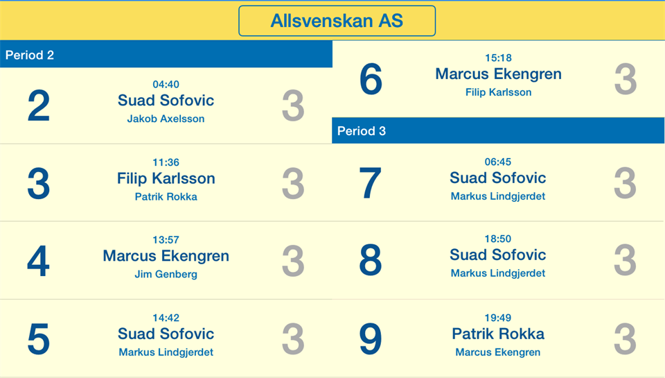 Är stolt över hur vi i laget genomförde matchen idag. Vi stod upp för klubbmärket på bröstet och gjorde ett hård jobb i 60 minuter, vilket resulterade i säkrat kontrakt, säger Örebros lagkapten Jakob Axelsson. Örebro stod för en makalös vändning från 1-3 efter tjugo spelade, till hela 8-0 sista fyrtio. Referat: Örebro vs Åstorp/Kvidinge Kvar i Allsvenskan! Ett sammanbitet lag samlades inför matchen. Alla visste vad som stod på spel. Vid förlust så var risken överhängande att vi skulle dras in i nedflyttningsstriden på allvar. Vi inledde första perioden rätt bra och skapade flera bra målchanser. Vi tar även ledningen med 1-0 efter 6 min genom Filip Karlsson. Tyvärr får vi inte utdelning på våra rätt klara chanser samtidigt som Åstorp/Kvidinge får utdelning. 1-3 i baken efter första perioden. Åstorp/Kvidinge tog över mer och mer av spelet under andra delen av perioden. Lite typiskt även att vi inte lyckas göra mål i 5-3 överläge i slutet av perioden. Ett liknande scenario från tidigare matcher under säsongen där vi spelat lite krampaktigt. I andra perioden tog vi tag i taktpinnen direkt och vi fick utdelning efter 4 min genom dagens målkung ”Soe” Sofovic. Med ett bra försvarsspel och rörligt anfallsspel så kändes vi rätt heta. Vi vinner andra perioden med 5-0. Jens Arvidsson gör en bra insats i målet och hela laget visar upp ett homogent och bra försvarsspel. Vi vinner tredje perioden med 3-0 efter stabilt spel. Vi håller tätt i boxplay genom kanonjobb av Jim Genberg, Anton Karlsson, Fredrik Josefson och Gustav Kroona. Avslutningsvis så konstaterar jag att vi lyckas hålla ihop laget mycket bra under 2:a och 3:e perioden genom att vi ödmjukt jobbade för varandra, bra målvaktsspel av Jens. Måste även plussa för ”Soe” Sofovic. En kille som inte gör så mycket väsen av sig på sidan om planen men som verkligen tagit flera kliv framåt denna säsong. Soe jobbar i regel alltid hårt för laget men han är även ett hot offensivt. En av våra mest spelskickliga spelare. Riktigt kul att han får utdelning hela 4 gånger i denna match. Måste även passa på och gratulera Åstorp/Kvidinge till en mycket bra första säsong i Allsvenskan. Ett ungt gäng som idag ställde upp med ett flertal spelare födda 1997 samt i övrigt ungt lag. Tränare Janne Ekengren • Matchhändelser • Allsvenskan Södra tabellen Läs mer: • Bildspecial – OrebroGuiden.com • IBF Örebro tog hem sista hemmamatchen briljant – OrebroGuiden.com • Örebro Innebandy säkrade kontraktet – NA.se/sporten • Å/K överbevisade Innebandysverige – Helsingborgs Dagblad • Efter Örebro – Åstorp-Kvidinge IBS akibsweb.blogspot.se/2015/03/allsvenskt-spel-aven-nasta-sasong.html • Inför Örebro – Åstorp-Kvidinge IBS • "Hallå Tuve" (spelarintervju) – Åstorp-Kvidinge IBS __________________________________________________________________________ Följ även Örebro Innebandy på sociala medier: • Facebook • Twitter "OrebroInnebandy" — Twittrar du om Örebro Innebandy? Använd hashtag #iböre • Instagram "ibforebro" Örebro - Division 1 7 mar 2015 0kommentarer
